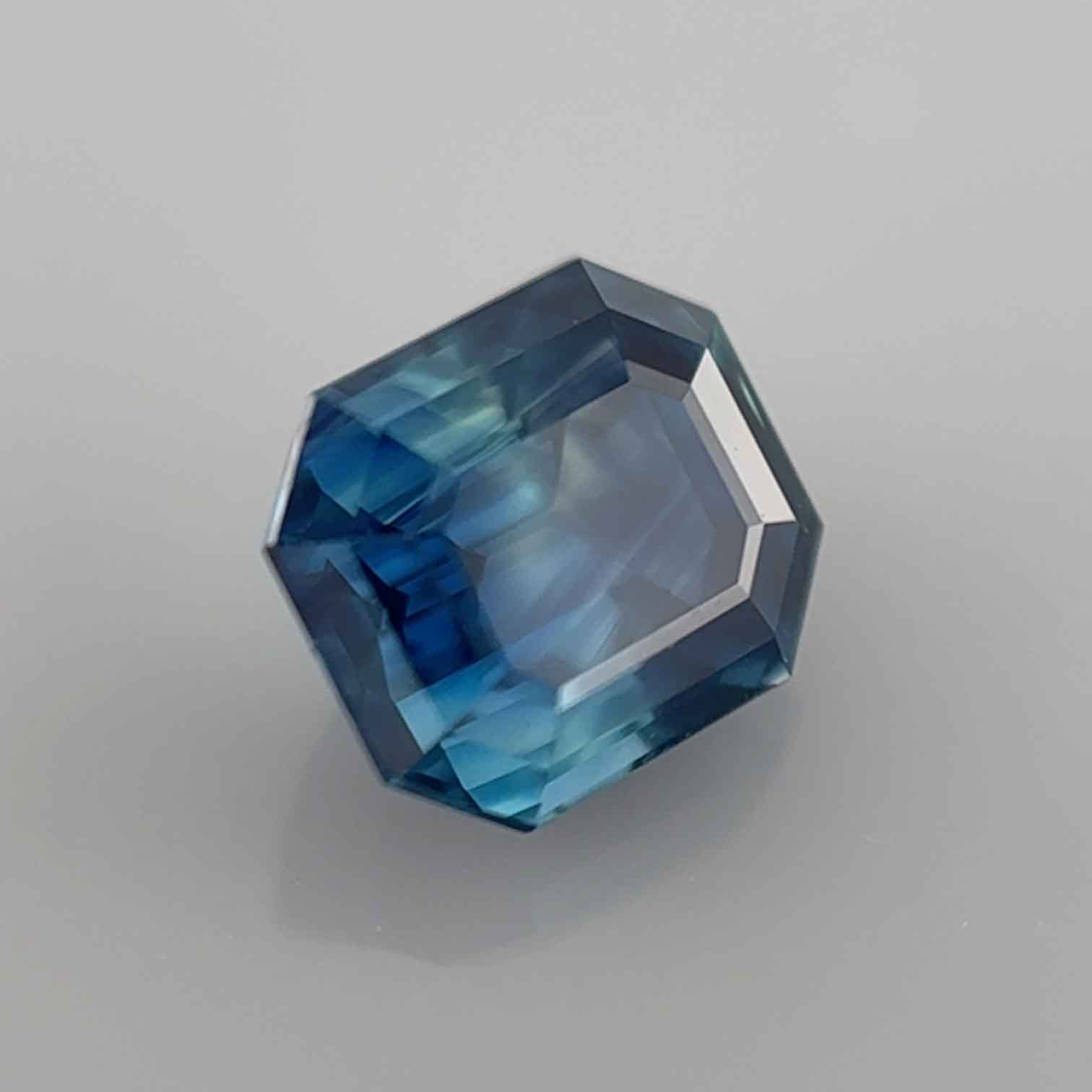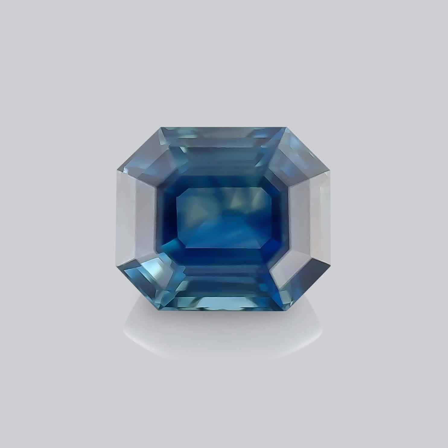 Voici un magnifique saphir bleu octogonal de 1.176 carats. Sa couleur est typique des meilleurs gisements basaltiques. On y retrouve ces notes gris-vert très nobles.