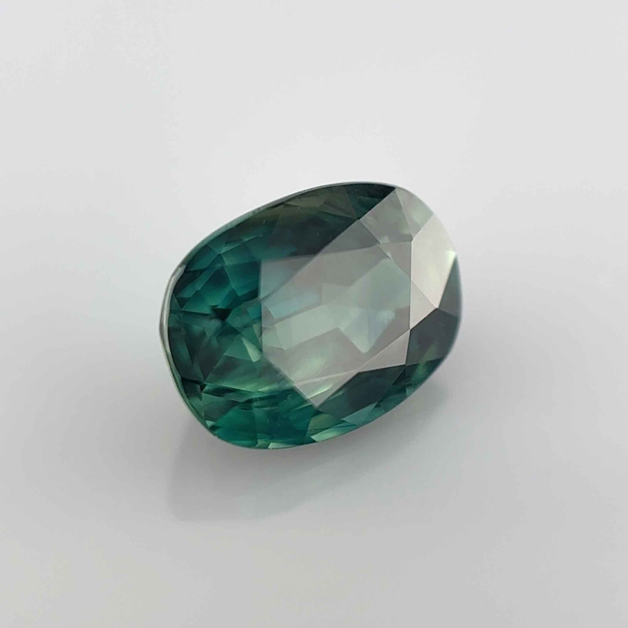 Voici un magnifique saphir bleu vert teal coussin de 1.867 carats. Sa couleur teal reflète parfaitement la tendance du moment.