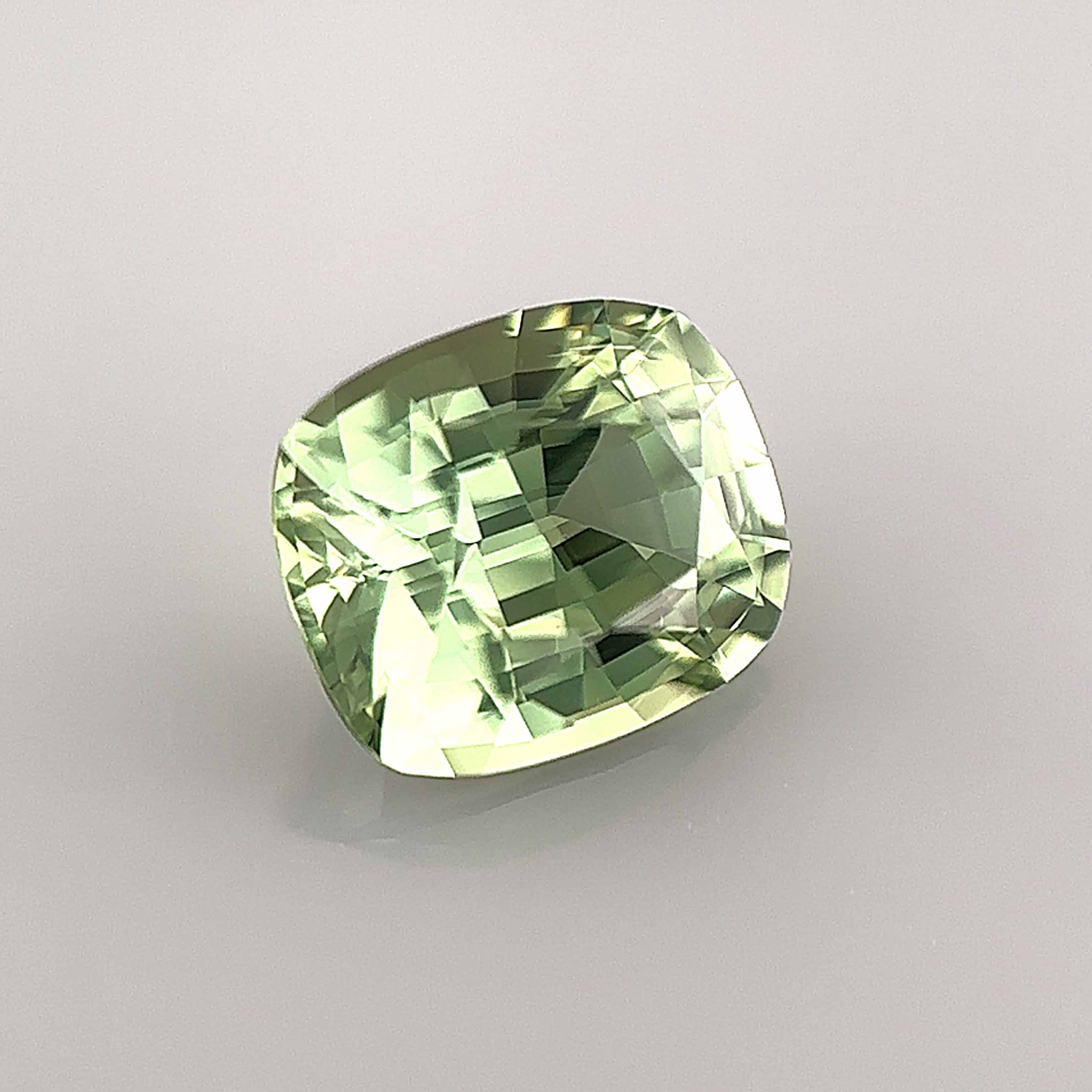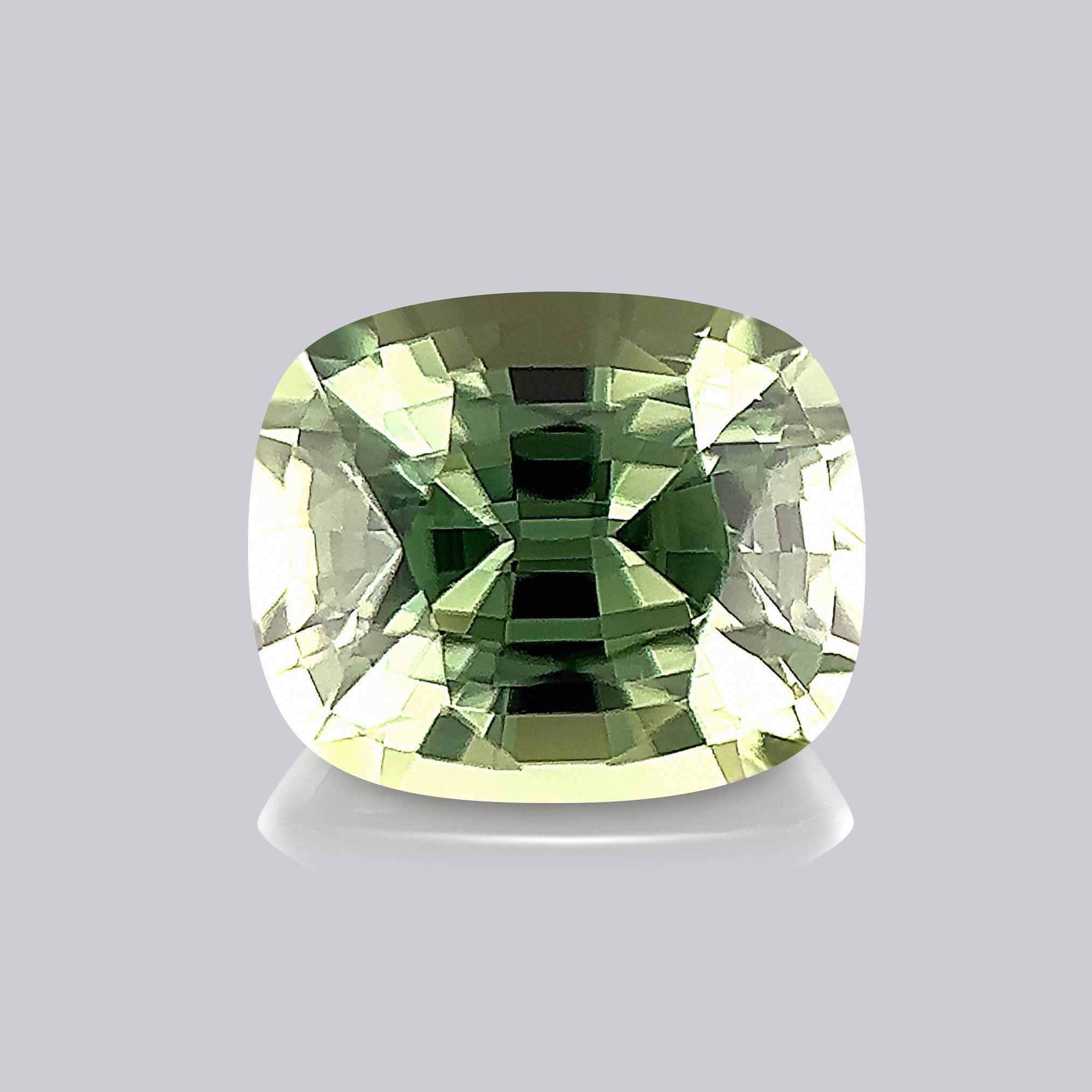 Je suis un superbe saphir vert naturel non chauffé. Ma taille coussin est de très belle facture ! Je suis très lumineux et n’attends que de figurer au centre d’une bague …