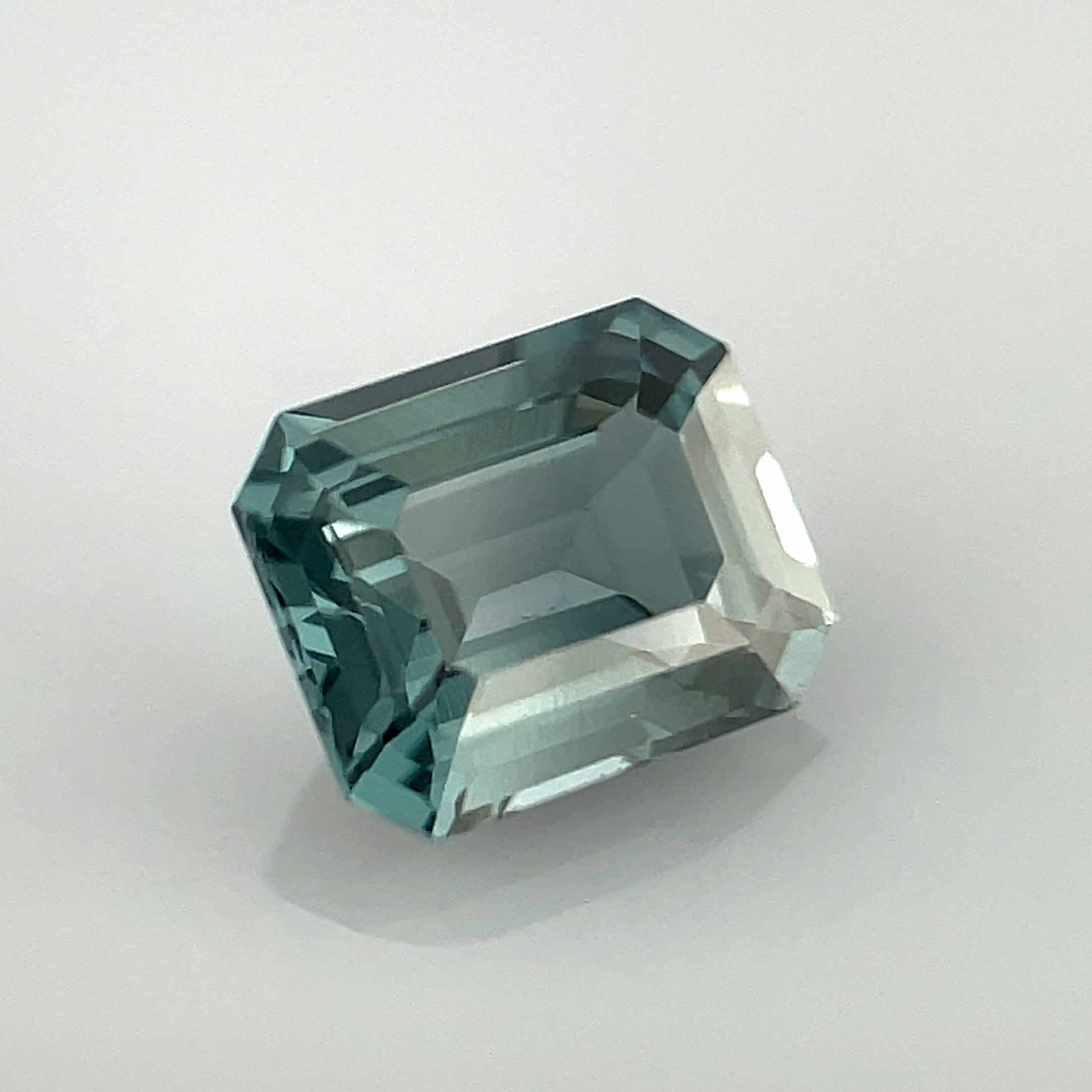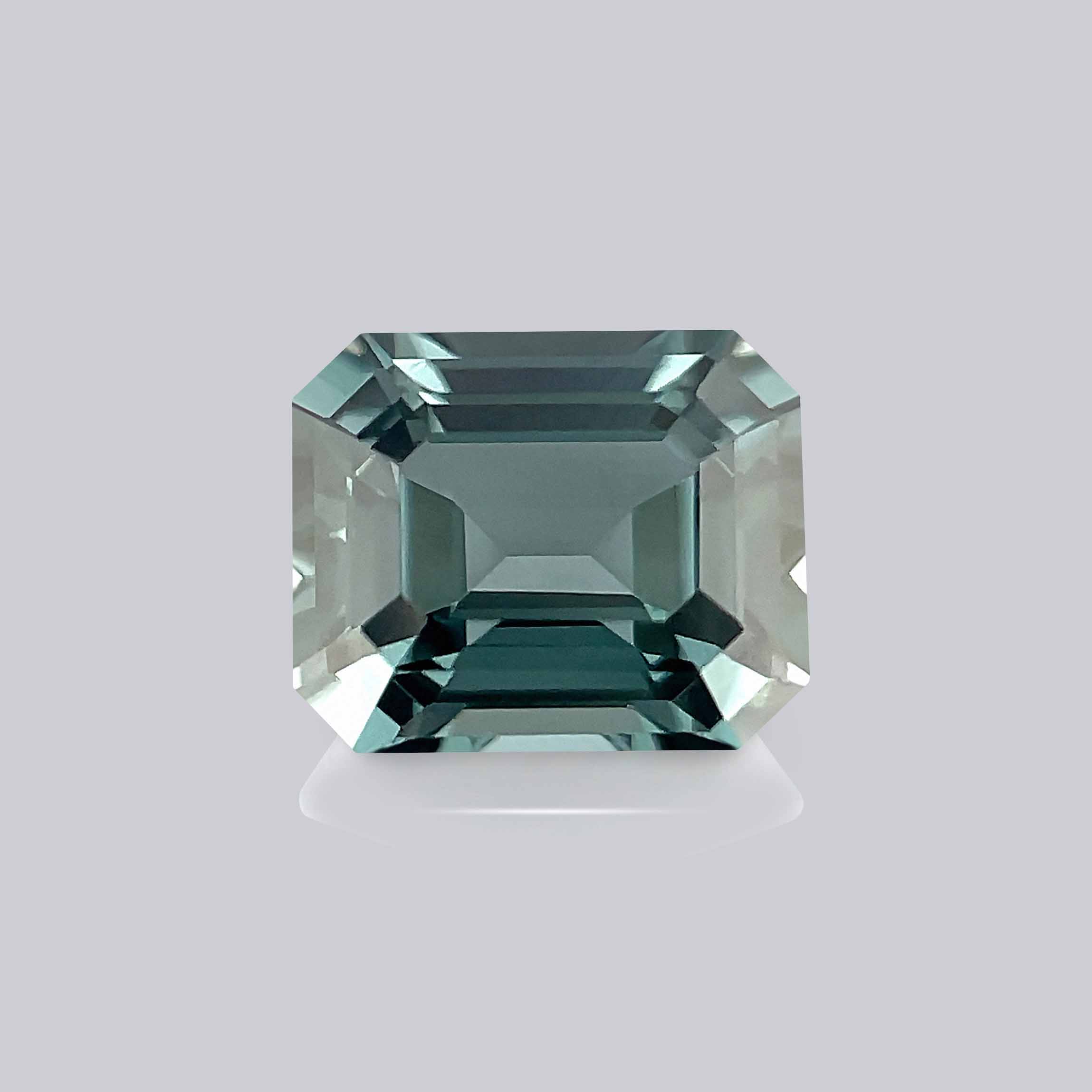 On adore l’éclat lumineux de cette gemme et sa teinte désaturée super tendance. La taille émeraude est superbe et la pureté parfaite.