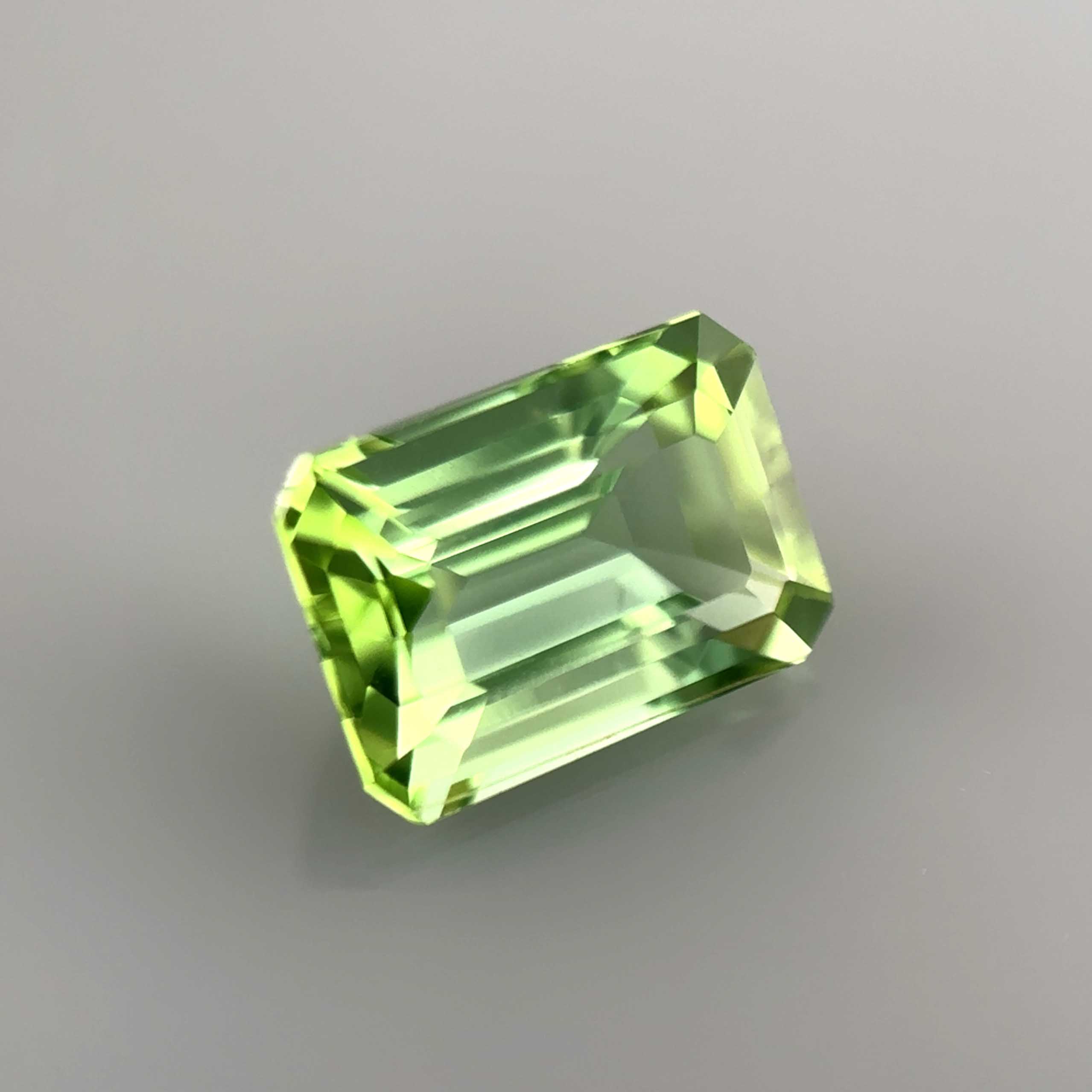 Voici une charmante tourmaline verte taille émeraude ! On aime sa couleur super fraiche mêlée de pointes de jaune. Nous l’avons fait tailler en octogone aux proportions superbes . Elle est prête à être montée en bijou !